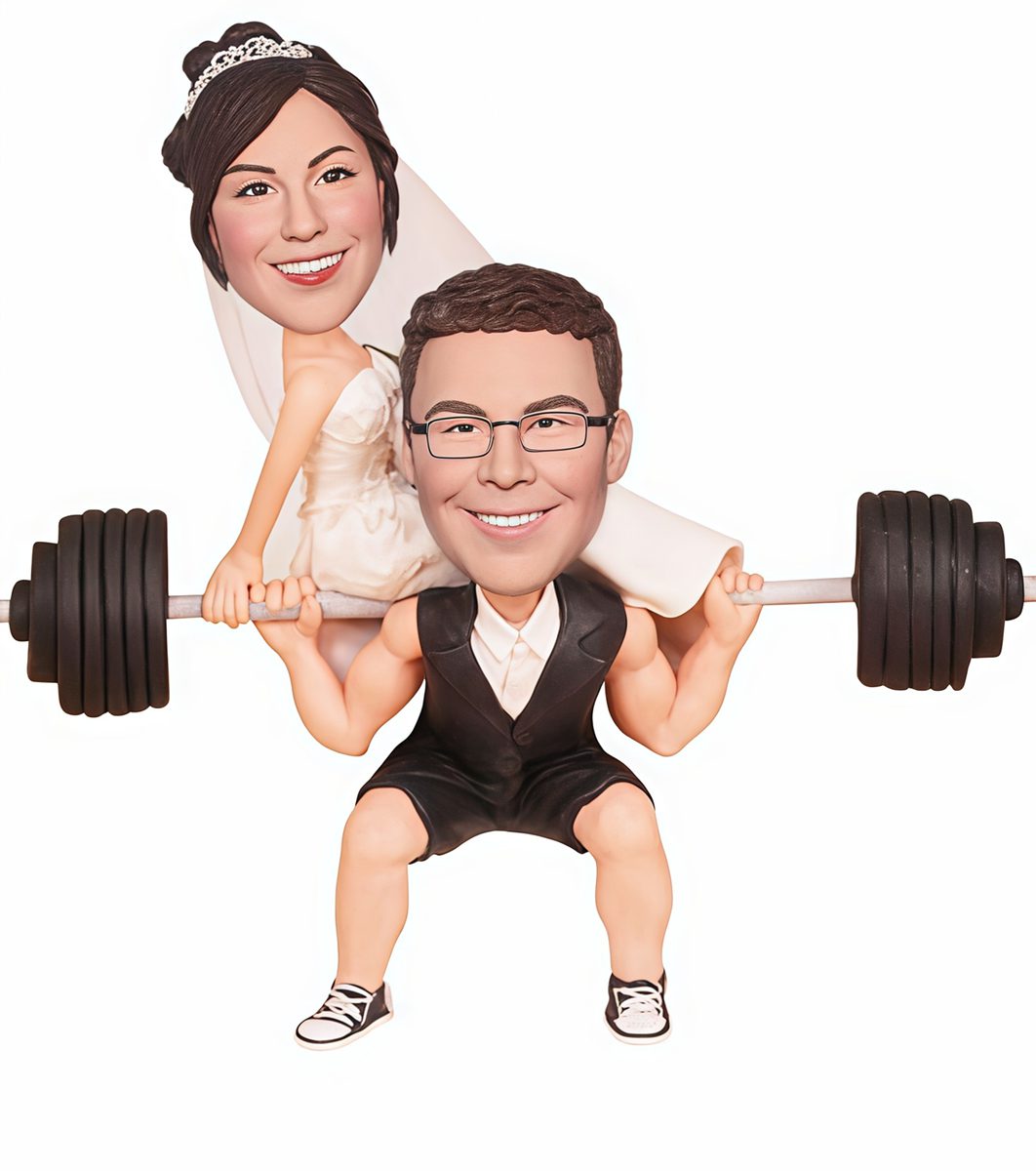 Using top-class polymer clay, we hand sculpt the head of the cake topper to resemble the photos you provide to us. You can choose from a pre-designed standard body or opt for our "head to toe customized" option for a fully personalized cake topper.